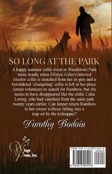 The first Collie Walkabout at Woodsboro Park turns tragic when Ellalyn Zoller's beloved tricolor collie, Rainbow, is snatched from her ex-pen and replaced by a bewildered lookalike substitute. Jennet soon learns that in the past the park has been the scene of two tragedies: a little girl's unsolved disappearance and a boy's drowning. Is the park cursed or just an unlucky place? Or is something sinister going on? Unfortunately, Jennet's search and her association with Rainbow's owner are mistaken for interference in a bold plot to kidnap and kill an elected official. Before she realizes it, Jennet has unwittingly walked into grave danger with no apparent way to escape the trap set for her.
