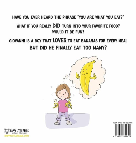 Have you ever heard the phrase "you are what you eat?" What if you really DID turn into your favorite food? Would it be fun or frightening? Giovanni is a boy that LOVES to eat bananas for every meal BUT DID HE FINALLY EAT TOO MANY? FILE THIS BOOK UNDER: Silly Short Stories for Kids