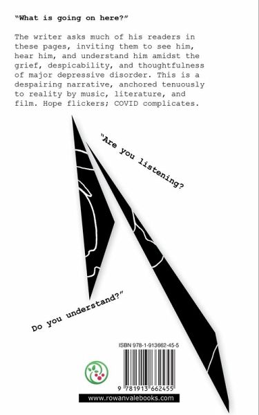 The writer invites his readers to see him, hear him, and understand him amidst the grief, despicability, and thoughtfulness of major depressive disorder. A despairing narrative, anchored tenuously to reality by music, literature, and film.