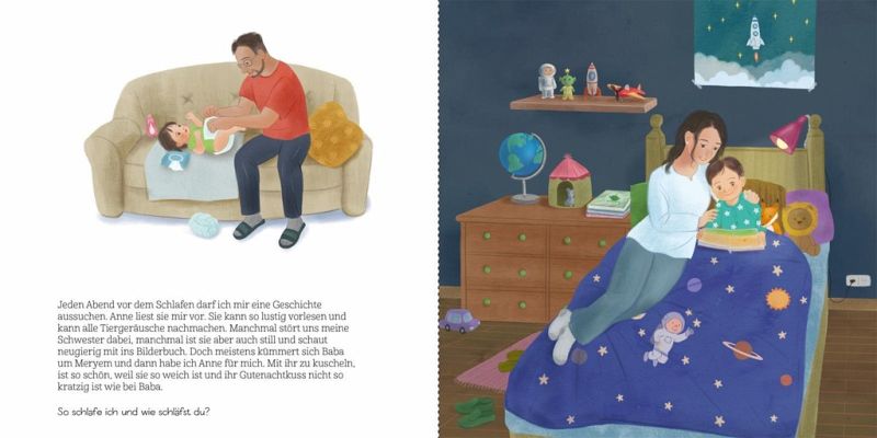 Abendrituale in den Familien können so verschieden sein wie die Familien selbst. Für jede Familie und jedes Kind gibt es einen eigenen Weg, den Tag zu beenden und in den Schlaf zu finden. In diesem Buch lernen kleine Leser_innen fünf Familienmodelle aus unterschiedlichen Kulturen kennen und können entdecken, welches Einschlafritual oder welche Schlafsituation ihrer am nächsten kommt. Wie werden andere Kinder ins Bett gebracht? Wer ist abends mit dabei, kleine oder große Geschwister, ein Elternteil oder zwei? Darf ferngesehen werden? Was gibt es zum Abendessen? Und welche Einschlafhilfe ist welchem Kind wichtig - ein Gebet, ein Kuscheltier, eine Geschichte oder ein Lied?