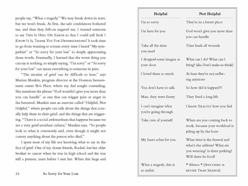 A searching, heartfelt exploration about what it means to process grief, by a bestselling author and journalist whose experience with two devastating losses inspired her to bring comfort and understanding to others. Since losing her mother to cancer in 2018 and her sister to alcoholism less than three years later, author and journalist Dina Gachman has dedicated herself to understanding what it means to grieve, healing after loss, and the ways we stay connected to those we miss. Through a mix of personal storytelling, reporting, and insight from experts and even moments of humor, Gachman gives readers a fresh take on grief and bereavement--whether the loss is a family member, beloved pet, or a romantic relationship. No one wants to join the grief club, since membership comes with zero perks, but So Sorry for Your Loss will make that initiation just a little less painful. In the spirit of Elizabeth Kubler Ross books like On Grief and Grieving, or C.S. Lewis's A Grief Observed, So Sorry for Your Loss is the perfect gift for someone who is grieving. With her blend of personal experiences, expert advice, and just a little bit of humor, Gachman has provided a compassionate and compelling resource for anyone looking for grief books.