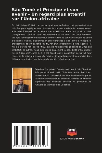 En fait, l'objectif était de lancer quelques réflexions qui pourraient être utilisées pour appliquer concrètement le nouveau modèle de développement à la réalité empirique de São Tomé et Príncipe. Bien qu'il y ait eu des changements continus dans les événements au cours de cette réflexion, tels que l'émergence de nouveaux acteurs dans le contexte africain, la tenue d'élections locales, législatives et présidentielles à São Tomé e Príncipe, le changement de philosophie du NEPAD d'un programme à une agence, la mise à jour de l'IDH par le PNUD, avec le nouveau visage donné en 2016 aux OMD/ODS et autres, nous admettons également la possibilité d'éventuelles mises à jour ultérieures (...). À cet égard, notre suggestion de travail futur concerne la mise en oeuvre du modèle de développement géo-social dans différents contextes, sur la base du modèle théorique utilisé.