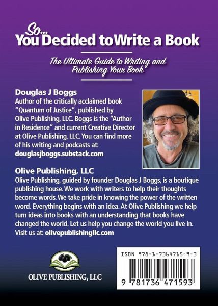 "So, You Decided to Write a Book - The Ultimate Guide to Writing and Publishing Your Book" is a complete self-help guide for aspiring writers of all levels and genres to follow along during the process of writing and publishing a book. This book is a deep dive into the process of writing; character, world, and scene development; editing; finding an agent; self, hybrid, and traditional publishing; creating a book cover; book marketing; and so much more of what it takes to become a successful writer in today's world. This book helps to navigate the author from the idea, to the blank page, to publication and successful marketing of the book, and the business of being a writer. Being a successful author today means understanding all aspects of the writing and publishing business. Most self-published books sell no more than 100 copies. Learning all of the nuances of the writing, publishing, and marketing process of this ever changing business will help your book become the success that you were hoping it would be. This guide helps C level business executives, entrepreneurs, coaches, and independent authors write the book that can help make them the experts in their chosen professions. Douglas J Boggs and Olive Publishing, LLC, have created the ultimate guide to learning all aspects of the business of writing and publishing. A writer of any level will find new aspects of of being a successful writer delivered by experts in the field.