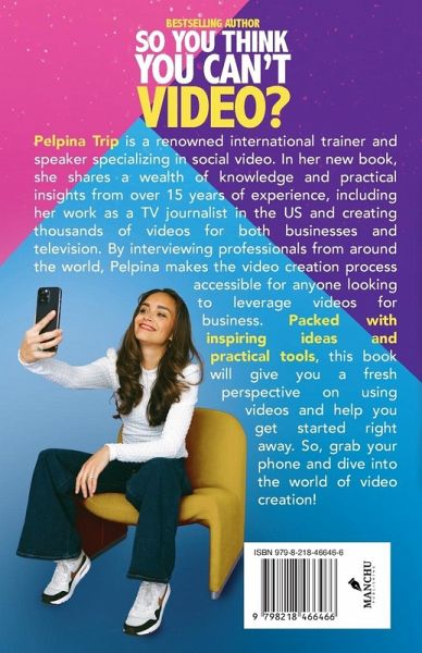 INTERNATIONAL BEST SELLER Pelpina Trip is a renowned international trainer and speaker specializing in social video. In her new book, she shares a wealth of knowledge and practical insights from over 15 years of experience, including her work as a TV journalist in America and creating thousands of videos for both businesses and television. By interviewing professionals from around the world, Pelpina makes the video creation process accessible for anyone looking to leverage videos for business. Packed with inspiring ideas and practical tools, this book will give you a fresh perspective on using videos and help you get started right away. So, grab your phone and dive into the world of video creation!