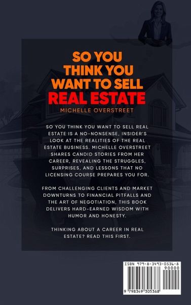Thinking about starting a career in real estate? This book will show you what it's really like beyond the open houses and shiny "Sold" signs. In So You Think You Want to Sell Real Estate, seasoned realtor Michelle Overstreet shares the unfiltered truth about life in the industry. Drawing from over 30 years of hands-on experience, she offers real world lessons, behind the scenes stories, and practical advice for new agents, aspiring professionals, and anyone curious about what it takes to succeed. This isn't a textbook. It's a candid, personal, and often humorous look at the ups, downs, and surprises of selling homes-from difficult clients and failed escrows to open house disasters and career changing deals. Inside, you'll discover: - What most real estate courses don't tell you - How to survive your first year (and beyond) - Hard won tips on dealing with buyers, sellers, and brokers - The emotional and financial realities of being your own boss - Why passion, persistence, and patience matter more than sales tactics Whether you're dreaming of a career change, just passed your exam, or already navigating the real estate jungle, this book is the honest, encouraging guide you didn't know you needed. If you're ready to stop fantasizing and start understanding what real estate is really about, this is your next must read.