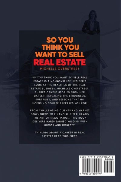 Thinking about starting a career in real estate? This book will show you what it's really like beyond the open houses and shiny "Sold" signs. In So You Think You Want to Sell Real Estate, seasoned realtor Michelle Overstreet shares the unfiltered truth about life in the industry. Drawing from over 30 years of hands-on experience, she offers real world lessons, behind the scenes stories, and practical advice for new agents, aspiring professionals, and anyone curious about what it takes to succeed. This isn't a textbook. It's a candid, personal, and often humorous look at the ups, downs, and surprises of selling homes-from difficult clients and failed escrows to open house disasters and career changing deals. Inside, you'll discover: - What most real estate courses don't tell you - How to survive your first year (and beyond) - Hard won tips on dealing with buyers, sellers, and brokers - The emotional and financial realities of being your own boss - Why passion, persistence, and patience matter more than sales tactics Whether you're dreaming of a career change, just passed your exam, or already navigating the real estate jungle, this book is the honest, encouraging guide you didn't know you needed. If you're ready to stop fantasizing and start understanding what real estate is really about, this is your next must read.