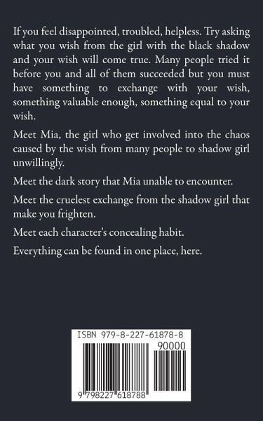 If you feel disappointed, troubled, helpless. Try asking what you wish from the girl with the black shadow and your wish will come true. Many people tried it before you and all of them succeeded but you must have something to exchange with your wish, something valuable enough, something equal to your wish. Meet Mia, the girl who get involved into the chaos caused by the wish from many people to shadow girl unwillingly. Meet the dark story that Mia unable to encounter. Meet the cruelest exchange from the shadow girl that make you frighten. Meet each character's concealing habit. Everything can be found in one place, here.