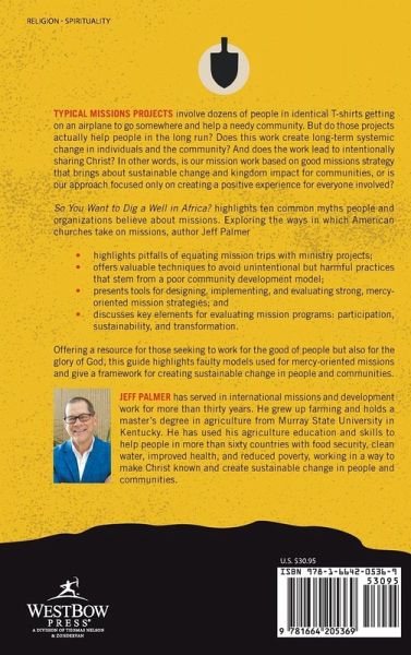 Typical missions projects involve dozens of people in identical T-shirts getting on an airplane to go somewhere and help a needy community. But do those projects actually help people in the long run? Does this work create long-term systemic change in individuals and the community? And does the work lead to intentionally sharing Christ? In other words, is our mission work based on good missions strategy that brings about sustainable change and kingdom impact for communities, or is our approach focused only on creating a positive experience for everyone involved? So You Want to Dig a Well in Africa? highlights ten common myths people and organizations believe about missions. Exploring the ways in which American churches take on missions, author Jeff Palmer ¿ highlights pitfalls of equating mission trips with ministry projects; ¿ offers valuable techniques to avoid unintentional but harmful practices that stem from a poor community development model; ¿ presents tools for designing, implementing, and evaluating strong, mercy-oriented mission strategies; and ¿ discusses key elements for evaluating mission programs: participation, sustainability, and transformation. Offering a resource for those seeking to work for the good of people but also for the glory of God, this guide highlights faulty models used for mercy-oriented missions and give a framework for creating sustainable change in people and communities.