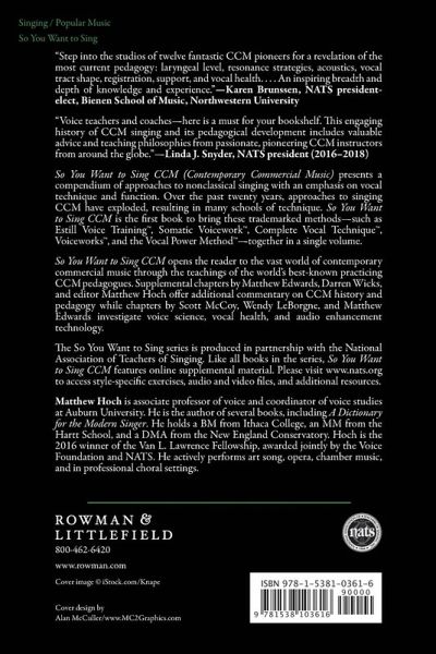 So You Want to Sing CCM (Contemporary Commercial Music) presents a compendium of approaches to non-classical singing with an emphasis on vocal technique and function. Over the past twenty years, approaches to singing CCM have exploded, resulting in many schools of technique. So You Want to Sing CCM is the first book to bring these trademarked methods-such as Estill Voice Training(TM), Somatic Voicework(TM), Complete Vocal Technique(TM), Voiceworks(TM), and the Vocal Power Method(TM)-together in a single volume. So You Want to Sing CCM opens the reader to the vast world of contemporary commercial music through the teachings of the world's best-known practicing CCM pedagogues. Supplemental chapters by Matthew Edwards, Darren Wicks, and editor Matthew Hoch offer additional commentary on CCM history and pedagogy while chapters by Scott McCoy, Wendy LeBorgne, and Matthew Edwards investigate voice science, vocal health, and audio enhancement technology. The So You Want to Sing series is produced in partnership with the National Association of Teachers of Singing. Like all books in the series, So You Want to Sing CCM features online supplemental material. Please visit www.nats.org to access style-specific exercises, audio and video files, and additional resources