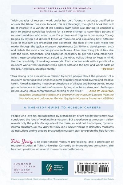 This book discusses some of the benefits of working in museums; explains how museums differ according to size, type, and organizational structure; and goes through dozens of museum positions in detail. It is designed to introduce college students, graduate students, and/or young professionals to the museum field.