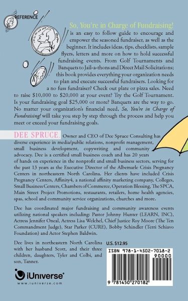 So, You're in Charge of Fundraising! is an easy to follow guide to encourage and empower the seasoned fundraiser, as well as the beginner. It includes ideas, tips, checklists, sample flyers, letters and more on how to hold successful fundraising events. From Golf Tournaments and Banquets to Jail-a-thons and Direct Mail Solicitations; this book provides everything your organization needs to plan and execute successful fundraisers. Looking for a no fuss fundraiser? Check out plate or pizza sales. Need to raise $10,000 to $20,000 at your event? Try the Golf Tournament. Is your fundraising goal $25,000 or more? Banquets are the way to go. No matter your organization's financial need, So, You're in Charge of Fundraising! will take you step by step through the process and help you meet or exceed your fundraising goals.