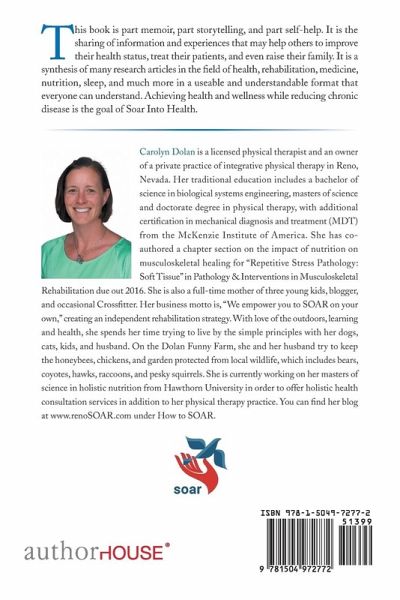 This book is part memoir, part storytelling, and part self-help. It is the sharing of information and experiences that may help others to improve their health status, treat their patients, and even raise their family. It is a synthesis of many research articles in the field of health, rehabilitation, medicine, nutrition, sleep, and much more in a useable and understandable format that everyone can understand. Achieving health and wellness while reducing chronic disease is the goal of Soar Into Health.
