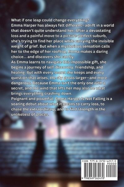 What if one leap could change everything? Emma Harper has always felt different-adrift in a world that doesn't quite understand her. After a devastating loss and a painful move to a picture-perfect suburb, she's trying to find her place while carrying the invisible weight of grief. But when a mysterious sensation calls her to the edge of her rooftop, Emma makes a daring choice... and discovers she can fly. As Emma learns to navigate this impossible gift, she begins a journey of self-discovery, friendship, and healing. But with every secret she keeps and every question that arises, the sky grows larger-and more dangerous. Because Emma isn't the only one with a secret, and the wind that lifts her may also be what brings everything crashing down. Poignant and powerful, Emma Harper Is Not Falling is a soaring debut about what it means to carry loss, to chase the extraordinary, and to find strength in the unlikeliest of places.