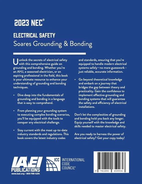 The IAEI's Soares Book on Grounding and Bonding, NEC 2023 is a definitive guide for electrical professionals seeking to master the principles of grounding and bonding in accordance with the latest National Electrical Code (NEC) standards. This fifteenth edition provides in-depth explanations, practical examples, and detailed illustrations to help readers understand and apply NEC requirements effectively. Covering a wide range of topics, including grounding electrode systems, bonding requirements, and specific applications for various electrical systems, this book is an essential resource for ensuring safety and compliance in electrical installations.