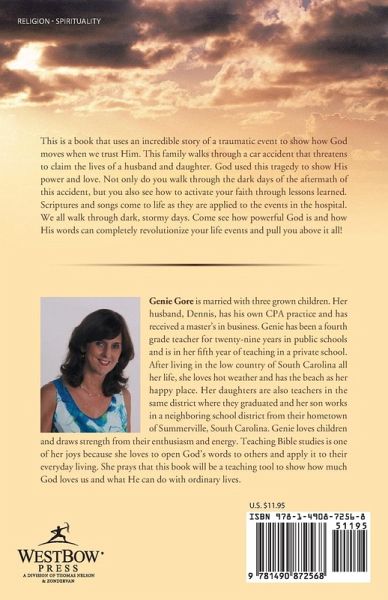 This is a book that uses an incredible story of a traumatic event to show how God moves when we trust Him. This family walks through a car accident that threatens to claim the lives of a husband and daughter. God used this tragedy to show His power and love. Not only do you walk through the dark days of the aftermath of this accident, but you also see how to activate your faith through lessons learned. Scriptures and songs come to life as they are applied to the events in the hospital. We all walk through dark, stormy days. Come see how powerful God is and how His words can completely revolutionize your life events and pull you above it all!
