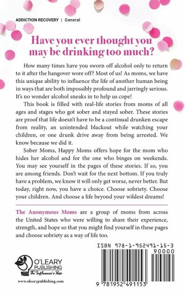 Have you ever thought you may be drinking too much? This unique book shares the anonymous stories of twelve modern moms who got sober and stayed sober using the Twelve Steps and Alcoholics Anonymous. They have chosen to remain anonymous out of respect for the AA tradition so that they do not break their anonymity at the level of media or press. We hope you enjoy this powerful collection of stories that shows the program still works if you work it. How many times have you sworn off alcohol only to return to it after the hangover wore off? Most of us! As moms, we have this unique ability to influence the life of another human being in ways that are both impossibly profound and jarringly serious. It's no wonder alcohol sneaks in to help us cope! This book is filled with real-life stories from moms of all ages and stages who got sober and stayed sober. These stories are proof that life doesn't have to be a continual drunken escape from reality, an unintended blackout while watching your children, or one drunk drive away from being arrested. We know because we did it. Sober Moms, Happy Moms offers hope for the mom who hides her alcohol and for the one who binges on weekends. You may see yourself in the pages of these stories. If so, you are among friends. Don't wait for the next bottom. If you truly have a problem, we know it will only get worse, never better. But today, right now, you have a choice. Choose sobriety. Choose your children. And choose a life beyond your wildest dreams!