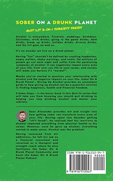 Sean Alexander is the international best-selling author of Sober On A Drunk Planet - Giving Up Alcohol. He is a qualified Counsellor, Strength & Conditioning Coach, Yoga Instructor and Financial Advisor.Having previously been locked up in a psychiatric ward for addiction, he has rebuilt his life through his sobriety and now helps build strong bodies and minds through his professional and personal experience.He spends his spare time walking his puppy, practising Muay Thai, playing golf, going to the gym and enjoys doing all the things he couldn't do when he was hungover!****Sean Alexander ist der Bestsellerautor von Nüchtern auf einem alkoholisierten Planeten - Ohne Alkohol leben (Sober On A Drunk Planet - Giving Up Alcohol). Er ist qualifizierter Therapeut, Trainer für Kraft und Kondition, Yogalehrer sowie Finanzberater.Aufgrund seiner Suchtprobleme fand er sich zeitweise sogar in einer psychiatrischen Klinik wieder. Inzwischen lebt er trocken, hat sein Leben umgekrempelt und neu angefangen. Heute unterstützt Sean andere dabei, sowohl einen starken Körper als auch einen starken Geist aufzubauen.In seiner Freizeit geht er gerne mit seinem Hund spazieren, trainiert Muay Thai, spielt Golf, geht ins Fitnessstudio und macht all die Dinge, die er nicht tun konnte, als er verkatert war!