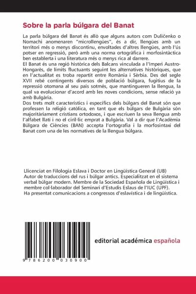 La parla búlgara del Banat és allò que alguns autors com Duli¿enko o Nomachi anomenaren "microllengües", és a dir, llengües amb un territori més o menys discontinu, envoltades d'altres llengües, amb l'ús potser en regressió, però amb una norma ortogràfica i morfosintàctica ben establerta i una literatura més o menys rica al darrere.El Banat és una regió històrica dels Balcans vinculada a l'Imperi Austro-Hongarès, de límits fluctuants seguint les alternatives històriques, que en l'actualitat es troba repartit entre Romània i Sèrbia. Des del segle XVII rebé contingents diversos de població búlgara, fugitius de la repressió otomana al seu país sotmés, que mantingueren la llengua, la qual va evolucionar d'acord amb les noves condicions, sense relació ya amb Bulgària.Dos trets molt característics i específics dels búlgars del Banat són que professen la religió catòlica, en tant que els búlgars de Bulgària són majoritàriament cristians ortodoxos, i que escriuen la seva llengua amb l'alfabet llatí i no el ciríl·lic emprat a Bulgària. Val a dir que l'Acadèmia Búlgara de Ciències (BAN) accepta l'ortografia i la morfosintaxi del Banat com una de les normatives de la llengua búlgara.