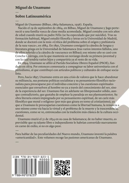 Sobre Latinoamérica recoge las pasiones americanas de Miguel de Unamuno. Para hablar de las peculiaridades del Nuevo mundo, Unamuno inventó la palabra americanidad, este libro recoge sus principales reflexiones sobre el tema. Leyendo sus artículos publicados en diferentes periódicos y revistas latinoamericanos, sus cartas y reflexiones es evidente que Unamuno tenía un gran interés por los temas de la América hispánica. Entre 1901 y 1906, Unamuno trabajó en el periódico La Lectura (Madrid) como redactor de la sección titulada De literatura hispanoamericana. Esa actividad lo puso en contacto con las obras literarias e históricas de Hispanoamérica. También, y gracias a la mediación de Rubén Darío, Unamuno había empezado a colaborar en La Nación (Buenos Aires). Entre 1899 y 1935 envió cientos de artículos y ensayos a este y a otros periódicos y revistas de Latinoamérica. Sin embargo, el vínculo más importante de Unamuno con Hispanoamérica fue a raíz de su lectura de las obras literarias e históricas de este continente. Además de su correspondencia y sus contactos y amigos personales, Es por esta razón que el escritor se halla en constante búsqueda de los antecedentes españoles de sus obras favoritas hispanoamericanas, tales como Martín Fierro.