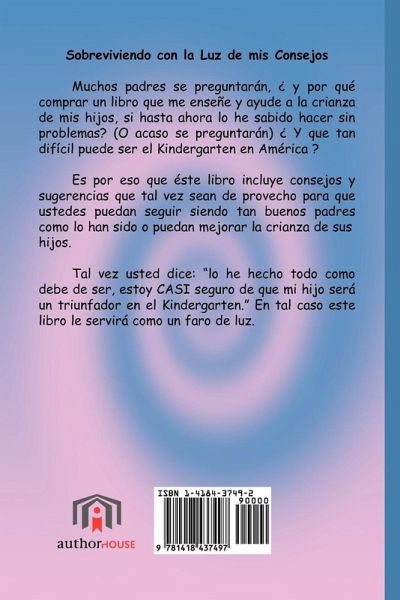 Sobreviviendo con la Luz de mis Consejos Muchos padres se preguntarán, ¿ y porqué comprar un libro que me enseñe y ayude a la crianza de mis hijos, si hasta ahora lo he sabido hacer sin problemas? (O acaso se preguntarán) ¿ Y que tan difícil puede ser el Kindergarten en América ? Es por eso que este libro incluye consejos y sugerencias que tal vez sean de provecho para que ustedes puedan seguir siendo tan buenos padres como lo han sido o puedan mejorar la crianza de sus hijos. Tal vez usted dice "lo he hecho todo como debe de ser, estoy "CASI" seguro de que mi hijo será un triunfador en el Kindergarten." En tal caso este libro le servirá como un faro de luz.