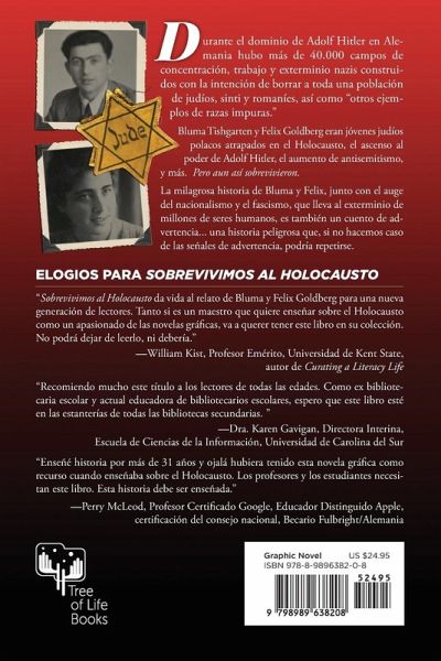 Durante el régimen de Adolf Hitler en Alemania hubo más de 40.000 campos de concentración, trabajo y exterminio nazis construidos con la intención de borrar a toda una población de judíos, sinti y romaníes, así como "otros ejemplos de razas impuras". Bluma Tishgarten y Felix Goldberg eran jóvenes judíos polacos atrapados en el Holocausto, el ascenso al poder de Adolf Hitler, el aumento de antisemitismo, y más. Pero aun así sobrevivieron. La milagrosa historia de Bluma y Felix, junto con el auge del nacionalismo y el fascismo, que lleva al exterminio de millones de seres humanos, es también un cuento de advertencia... una historia peligrosa que, si no hacemos caso de las señales de advertencia, podría repetirse. ENGLISH DESCRIPTION During Adolf Hitler's rule over Germany, there were over 40,000 Nazi concentration, labor, and death camps built with the intent of erasing an entire population of Jews, Sinti, and Roma, as well as "other examples of impure races." Bluma Tishgarten and Felix Goldberg were both young Polish Jews caught up in the Holocaust, Hitler's rise to power, the rise of antisemitism, and more. Yet they survived. Bluma and Felix's miraculous story of survival, combined with the rise of nationalism and fascism, leading to the extermination of millions of human beings, is also a cautionary tale―a dangerous history that, if we do not heed the warning signs, could very well be repeated.