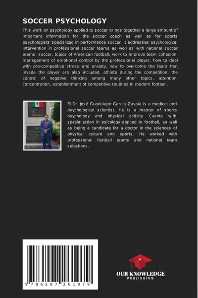 This work on psychology applied to soccer brings together a large amount of important information for the soccer coach as well as for sports psychologists specialized in performance soccer. It addresses psychological intervention in professional soccer teams as well as with national soccer teams. soccer, topics of American football, work to improve team cohesion, management of emotional control by the professional player, how to deal with pre-competitive stress and anxiety, how to overcome the fears that invade the player are also included. athlete during the competition, the control of negative thinking among many other topics, attention, concentration, establishment of competitive routines in modern football.