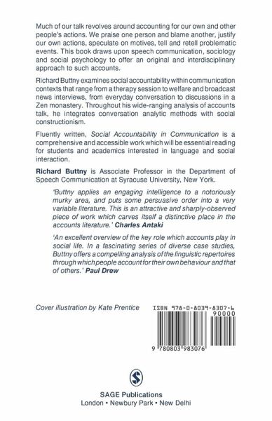 Winner of the Outstanding Scholarship Award from the Language & Social Interaction Division of the National Communication Association 2007! Much of our talk revolves around accounting for our own and other people's actions. We praise one person and blame another, justify our own actions, speculate on motives, tell and retell problematic events. This volume draws upon speech communication, sociology and social psychology to offer an original approach to such accounts. Richard Buttny examines social accountability within communication contexts that range from a therapy session to welfare and broadcast news interviews, from everyday conversation to discussions in a Zen monastery. Throughout his wide-ranging analysis of accounts talk, he integrates conversation analytic methods with social constructionism.