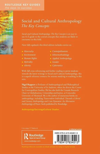 Social and Cultural Anthropology: the Key Concepts is an easy to use A-Z guide to the central concepts that students are likely to encounter in this field. Now fully updated, this third edition includes entries on: Material Culture Environment Human Rights Hybridity Alterity Cosmopolitanism Ethnography Applied Anthropology Gender Cybernetics With full cross-referencing and revised further reading to point students towards the latest writings in Social and Cultural Anthropology, this is a superb reference resource for anyone studying or teaching in this area.
