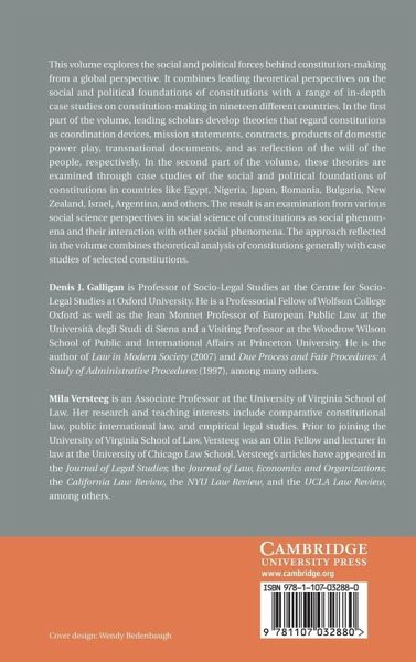 This volume explores the social and political forces behind constitution making from a global perspective. It combines leading theoretical perspectives with in-depth case studies from nineteen countries. The result is an examination of constitutions as social phenomena and their interaction with other social phenomena, from various perspectives.