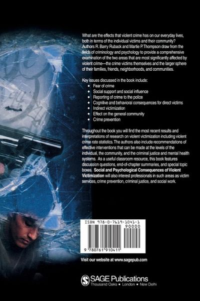 The book's one-of-a-kind focus on both the psychological and social impact of crime makes it an invaluable supplementary text for criminal justice and criminology courses dealing with victimization, violent crimes and the criminal justice process. Psychology courses dealing in law and crime also benefit from this text, which features discussion questions, end-of-chapter summaries, and special topic boxes. The book will also interest professionals in victims' services, crime prevention, criminal justice, and social work.