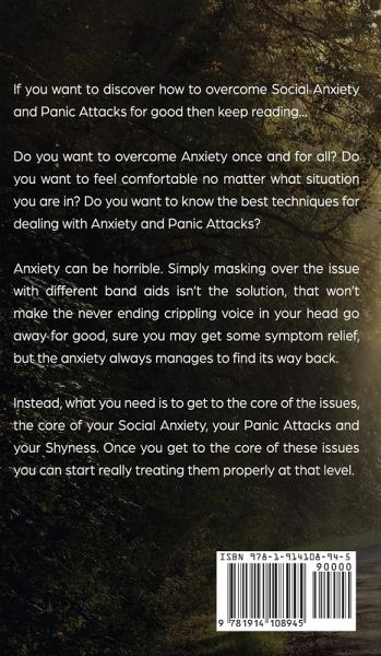 If you want to discover how to overcome Social Anxiety and Panic Attacks for good then keep reading... Do you want to overcome Anxiety once and for all? Do you want to feel comfortable no matter what situation you are in? Do you want to know the best techniques for dealing with Anxiety and Panic Attacks? Anxiety can be horrible. Simply masking over the issue with different band aids isn't the solution, that won't make the never ending crippling voice in your head go away for good, sure you may get some symptom relief, but the anxiety always manages to find its way back. Instead, what you need is to get to the core of the issues, the core of your Social Anxiety, your Panic Attacks and your Shyness. Once you get to the core of these issues you can start really treating them properly at that level. It's time to use Scientifically backed, proven strategies to finally fully overcome your Anxiety, stop just putting band aids on it and hope it will go away. Here is just a snippet of what you will find inside- • The Essential Step-by-step guide to overcoming Panic Attacks forever! • Exactly how to stop caring what others think of you! • Medication that makes your Anxiety worse! • Stop wasting time trying to manage your anxiety, do this instead! • What doctors won't tell you about Anxiety treatments • 4 Proven techniques to get the better of shyness once and for all! • Why more people are becoming more anxious than ever before • 7 Must know strategies to overcome Social Anxiety! • The simple everyday habit to deal with all kinds of Anxiety! • How you can flourish and finally come out of your comfort zone • What Lady Gaga and Emma Stone can teach you about Anxiety • The most beneficial technique for dealing with all Social Anxiety! And, this is barely even scratching the surface! So even if you've spent your whole life in crippling Anxiety without a hope of ever being free of it, this book shows exactly how you can practically and easily begin to start finally getting the freedom you long for and deserve. Whereas most Anxiety 'cures' aim to simply mask over the issue, this book lets you dive deep into the causes and true solutions to finally get the results you desire. So if you want to learn exactly how to beat Anxiety, Panic Attacks and Shyness once and for all, then scroll up and click "Add to Cart"