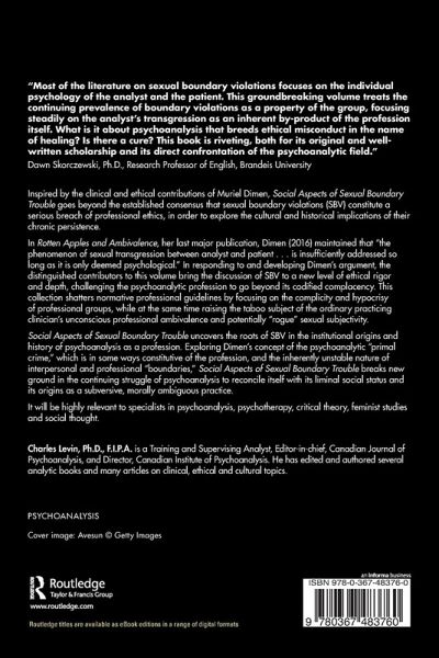 1. Introduction: Social Preconditions of Psycho-Sexual Violations in Psychoanalysis: Reflections on the work of Muriel Dimen 2. Rotten Apples and Ambivalence: Sexual Boundary Violations through a Psychocultural Lens 3. Rehabilitation in a Boundary Violation from the Perspective of the Transgressor 4. BOUNDARY VIOLATIONS: The assaults on thinking: Consequences and remedies 5. When the Cat Guards the Canary: Using Bystander Intervention Towards Community-Based Response 6. Does Sexuality Have Anything to with Sexual Boundary Violations? 7. Reflections on the Aesthetics of the Psychic Boundary Concept: Or, Why Refer to Sexual Misconduct with Patients as Boundary Violation? 8. When the Body Knows the Mind's Rest 9. From No to Know: Charting the "Space Between" 10. Boundary Trouble in the Psychoanalytic Republic: Reflections on Muriel Dimen's Concept of the 'Primal Crime' 11. Losing Our Psychoanalytic Virginity