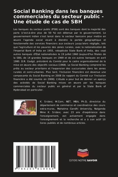 Les banques du secteur public (PSB) sont des banques dont la majorité des parts (c'est-à-dire plus de 50 %) est détenue par le gouvernement. Le gouvernement indien s'est lancé dans le secteur bancaire pour mettre en oeuvre l'agenda social visant à étendre la portée géographique et fonctionnelle des services financiers aux secteurs jusqu'alors négligés, tels que l'agriculture et les pauvres des zones rurales, avec la nationalisation de l'Imperial Bank of India en 1955, rebaptisée State Bank of India, des sept autres banques d'État nationalisées le 19 juillet 1960 (aujourd'hui filiales de la SBI), de 14 grandes banques en 1969 et de six autres banques en avril 1980. D.R. Gadgil, président du Comité pour le cadre organisationnel de la mise en oeuvre des objectifs sociaux (1968). Le Social Banking comprend les prêts au secteur prioritaire et l'expansion des succursales dans les zones rurales et semi-urbaines. Plus tard, l'inclusion financière est devenue une composante du Social Banking en 2008 (le rapport du Comité sur l'inclusion financière a été soumis en 2008). L'étude a pour but de donner un aperçu des activités de Social Banking mises en oeuvre par les banques commerciales du secteur public en général et par la State Bank of Hyderabad en particulier.