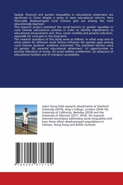 Spatial, financial and gender inequalities in educational attainment are significant in China despite a series of state educational reforms. Here financially disadvantaged rural Chinese girls are among the most educationally deprived.This research project examined the social barriers to gender equalities in rural Chinese educational contexts in order to identify impediments to educational advancement and, thus, career mobility and poverty reduction, especially for rural girls in the long-term. The research questions of this study were as follows: In what ways and to what extent do different social factors influence the gender gaps among rural Chinese students' academic outcomes? The examined barriers were (a) gender, (b) parental educational attainment, (c) opportunities to practise Mandarin at home, (d) social welfare entitlement, (e) adequacy of educational facilities and (f) transport accessibility.