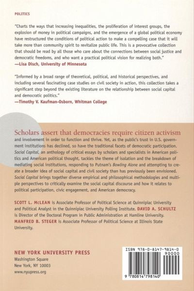 "Social Capital is an important crtique that should stimulate further analysis and dicussion of what constitutes community." ? New Political Science "The reader emerges with a good sense of the gaps in Putnam's work- or more appropriately in the context of this book, the way in which the 'feelgood' factor of Putnam's work deserves critical analysis." ?Voluntas: International Journal of Voluntary and Nonprofit Organizations This collection tackles the theme of isolation and the breakdown of mediating social institutions. It is, in part, a response to Robert Putnam's Bowling Alone as well as an attempt to create a broader idea of civil society. These original essays contribute to the examination of democratic theory and practice, exploring one of the most popular causes of this decline in public trust?social capital. These critical essays are written by specialists and scholars in American politics and American political thought. They utilize diverse methodologies?empirical and philosophical?and multiple perspectives to examine critically the social capital discourse and how it is related to political participation, civic engagement, and American democracy.