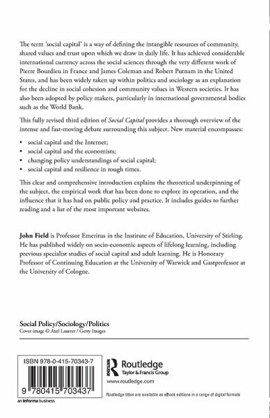 This fully revised third edition of Social Capital provides a thorough overview of the intense and fast-moving debate surrounding this subject. New material encompasses: