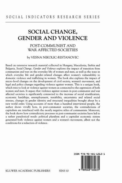 Based on large research material collected in Hungary, Macedonia, Serbia and Bulgaria Social change, Gender and Violence is the book which explores the impact of transition from communism and war on everyday life of women and men, as well as the way how everyday life and gender related changes affect women's vulnerability to domestic violence and trafficking in women. The book also explores the impact of micro level changes on development of civil society, women's movement, and legal and policy changes regarding violence against women. This is a unique book, which tries to look at violence against women as connected to oppression of both women and men. It argues that violence against women in post-communist and war affected societies is significantly connected to the increase of social stratification, economic hardship, unemployment, instability, uncertainty and related social stresses, changes in gender identity and structural inequalities brought by new world order. Using largely accounts of more than hundred interviewed people, the author shows vividly how, in post-communist societies, the contradictions of capitalism are interlaced with the mostly negative relics of communism. Moreover, the book shows how contradictory processes in post-communist societies have led to a rather paradoxical result: political pluralism and a capitalist economic system generated both violence against women and a women's movement, albeit not the conditions for a reduction of violence.
