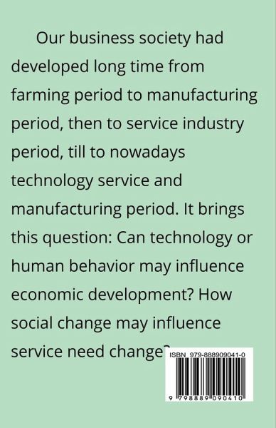 Our business society had developed long time from farming period to manufacturing period, then to service industry period, till to nowadays technology service and manufacturing period. It brings this question: Can technology or human behavior may influence economic development? How social change may influence service need change? In my this book, I give examples to explain how to apply psychological and behavioral economic both view point related methods to predict individual service need behavioral change to let businessmen learn how to choose the reasonable or right methods to attract customers to choose the kind of service in preference.