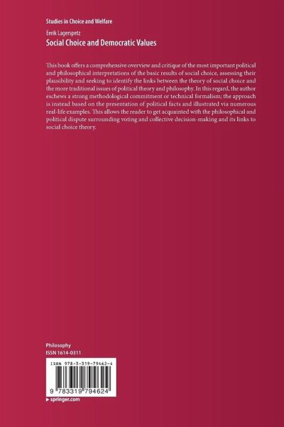 This book offers a comprehensive overview and critique of the most important political and philosophical interpretations of the basic results of social choice, assessing their plausibility and seeking to identify the links between the theory of social choice and the more traditional issues of political theory and philosophy. In this regard, the author eschews a strong methodological commitment or technical formalism; the approach is instead based on the presentation of political facts and illustrated via numerous real-life examples. This allows the reader to get acquainted with the philosophical and political dispute surrounding voting and collective decision-making and its links to social choice theory.