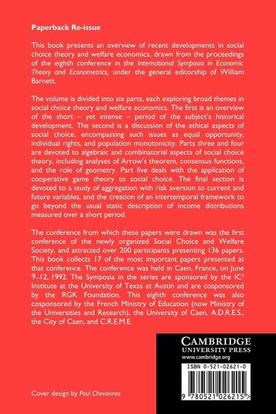 The volume is divided into six parts, each exploring broad themes in social choice theory and welfare economics. The first is an overview of the short - yet intense - period of the subject's historical development. The second is a discussion of the ethical aspects of social choice, encompassing such issues as equal opportunity, individual rights, and population monotonicity. Parts three and four are devoted to algebraic and combinatorial aspects of social choice theory, including analyses of Arrow's Theorem, consensus functions, and the role of geometry. Part five deals with the application of cooperative game theory to social choice. The final section is devoted to a study of aggregation with risk aversion to current and future variables, and the creation of an intertemporal framework to go beyond the usual static description of income distributions measured over a short period.