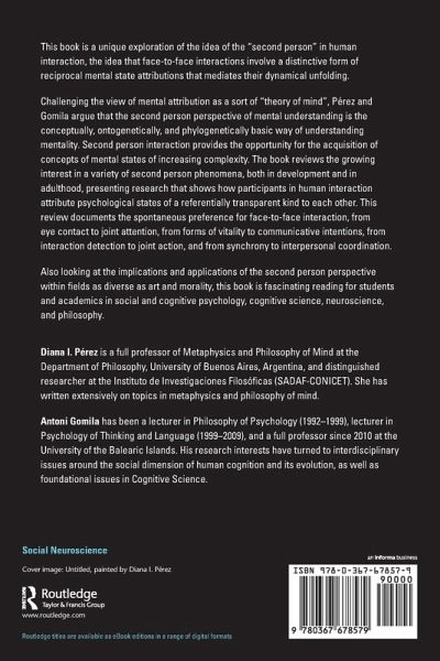 Challenging the view of mental attribution as a sort of "theory of mind", Pérez and Gomila argue that the second person perspective of mental understanding is the conceptually, ontogenetically, and phylogenetically basic way of understanding mentality. Second person interaction provides the opportunity for the acquisition of concepts of mental states of increasing complexity. The book reviews the growing interest in a variety of second person phenomena, both in development and in adulthood, presenting research that shows how participants in human interaction attribute psychological states of a referentially transparent kind to each other. This review documents the spontaneous preference for face-to-face interaction, from eye contact to joint attention, from forms of vitality to communicative intentions, from interaction detection to joint action, and from synchrony to interpersonal coordination.