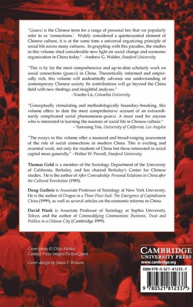Guanxi, translated as 'social connections,' or 'social networks,' is among the most important studied phenomena in China today. Guanxi lies at the heart of China's social order, its economic structure, and its changing institutional landscape. It is considered important in every realm of life, from politics to business, and officialdom to street life. This volume offers scholarly thinking on the subject by top China sociologists whose work on guanxi has been influential and by scholars offering insights on the topic. The authors examine the role of guanxi in: business decisions among managers and entrepreneurs; the decisions and practices of workers; the construction of new legal institutions; the new social order. Scholars and students of China will find this a rich source of detailed information on the workings of Chinese social relationships and a valuable, new interpretation of the meaning and place of guanxi today.