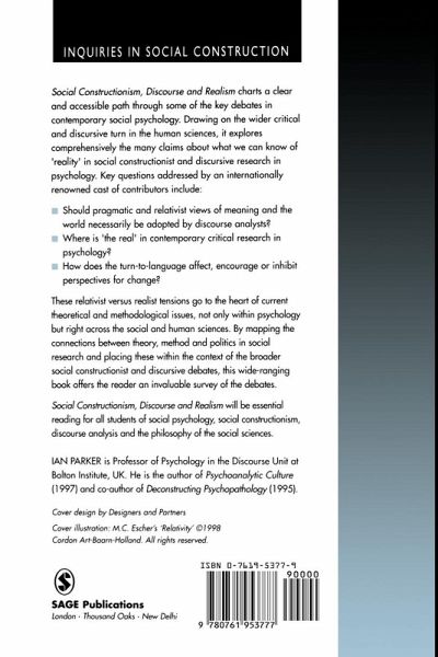 Drawing upon the wider critical and discursive turn in the human sciences, Social Constructionism, Discourse and Realism explores comprehensively the many claims about what we can know of `reality' in social constructionist and discursive research in psychology. Relativist versus realist tensions go to the heart of current theoretical and methodological issues, not only within psychology but across the social and human sciences. By mapping the connections between theory, method and politics in social research and placing these within the context of the broader social constructionist and discursive debates, the internationally renowned contributors offer the reader an invaluable survey of the debates.