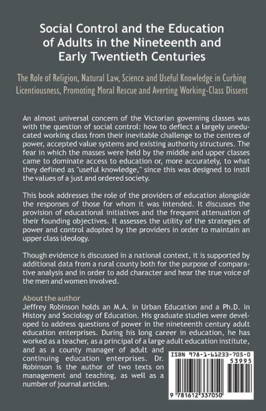 An almost universal concern of the Victorian governing classes was with the question of social control: how to deflect a largely uneducated working class from their inevitable challenge to the centres of power, accepted value systems and existing authority structures. The fear in which the masses were held by the middle and upper classes came to dominate access to education or, more accurately, to what they defined as "useful knowledge," since this was designed to instil the values of a just and ordered society. Conversely for the working class, it would give them power; power over their own lives and in so-doing provide access to that social hierarchy currently valued by the governing minority. This book addresses the role of the providers of education alongside the responses of those for whom it was intended. It discusses the provision of educational initiatives and the frequent attenuation of their founding objectives. It assesses the utility of the strategies of power and control adopted by the providers in order to maintain an upper class ideology. Though evidence is discussed in a national context, it is supported by additional data from a rural county both for the purpose of comparative analysis and in order to add character and hear the true voice of the men and women involved.