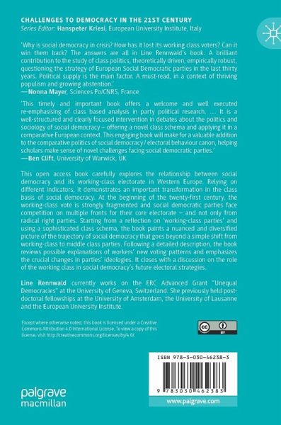 This open access book carefully explores the relationship between social democracy and its working-class electorate in Western Europe. Relying on different indicators, it demonstrates an important transformation in the class basis of social democracy. At the beginning of the twenty-first century, the working-class vote is strongly fragmented and social democratic parties face competition on multiple fronts for their core electorate - and not only from radical right parties. Starting from a reflection on 'working-class parties' and using a sophisticated class schema, the book paints a nuanced and diversified picture of the trajectory of social democracy that goes beyond a simple shift from working-class to middle-class parties. Following a detailed description, the book reviews possible explanations of workers' new voting patterns and emphasizes the crucial changes in parties' ideologies. It closes with a discussion on the role of the working class in social democracy's future electoralstrategies.