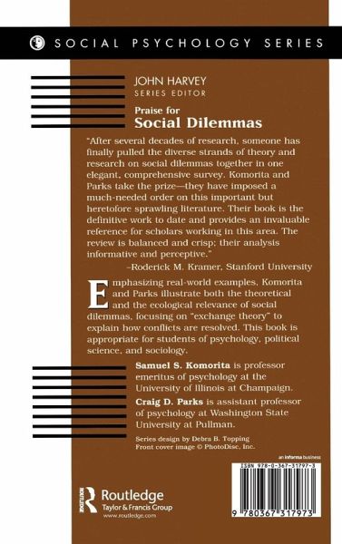 Emphasizing real-world examples, Komorita and Parks illustrate both the theoretical and the ecological relevance of social dilemmas, focusing on "exchange theory" to explain how conflicts are resolved.