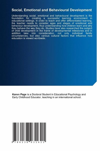 Understanding social, emotional and behavioural development is the foundation for creating a successful learning environment in educational settings. In order to teach and offer differentiated learning, the teacher needs to consider ages and stages of emotional and behaviour development, thus understanding how children learn and why they behave the way they do. Studies have also researched the subject of child development in the frame of developmental milestones and in addition take into consideration, not only individual family circumstances, but also various cultural factors that influence how education is viewed worldwide.