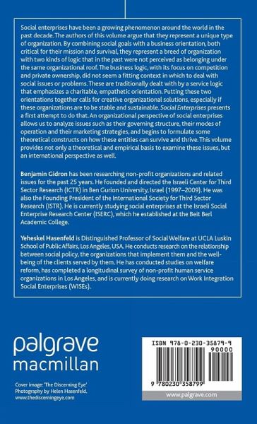 List of Tables List of Figures Foreword; S.R.Smith Notes on Contributors Introduction; B.Gidron & Y.Hasenfeld PART I: THEORETICAL APPROACHES The State of Theory and Research on Social Enterprises; D.R.Young Social Enterprises and Social Categories; J.Galaskiewicz & S.N.Barringer Conceptions of Social Enterprise in Europe: A Comparative Perspective with the United States; J.Defourny & M.Nyssens Defining Social Enterprise across Different Contexts: A Conceptual Framework Based on Institutional Factors; J.A.Kerlin PART II: EMPIRICAL STUDIES Managing Conflicting Institutional Logics: Social Service vs. Market; E.Garrow & Y.Hasenfeld The Phenomenon of Social Businesses: Some Insights from Israel; B.Gidron & I.Abbou Social Enterprise in Mixed-Form Fields: Challenges and Prospects; P.B.McInerney Chasing the Double-Bottom Line: Fair Trade and the Elusive Win-win; C.Child Mission Control: Examining the Institutionalization of New Legal Forms of Social Enterprise in Different Strategic Action Fields; K.Cooney Postscript The Legitimacy of Social Entrepreneurship: Reflexive Isomorphism in a Pre Paradigmatic Field; A.Nicholls