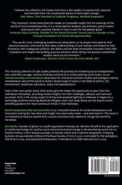 Social innovation and social entrepreneurship look for creative and affordable solutions to specific societal problems. Fuelled by the spread of the internet and the ubiquity of mobile phones, there are more people working to solve pressing social and environmental problems in the world today than ever before. Social Entrepreneurship and Innovation presents the journeys of pioneering - and often accidental - social innovators who, faced with a problem, used their courage, tenacity and creative thinking to find a solution. Using their own words to reflect upon their experiences, these cases do not gloss over the setbacks and the dead-ends social entrepreneurs can face. Instead, readers will gain a realistic insight into the challenges and an engaging look at the problem-solving mindset needed to overcome them. From a life-saving project to bring solar-powered lighting to midwives in Nigeria, to a news dissemination service that's grown from small beginnings to have a global impact, each case study draws out the lessons learnt by the innovators, providing guidance and advice for those looking to follow in their footsteps. Social Entrepreneurship and Innovation is an invaluable resource for social entrepreneurs and innovators looking for new ideas and insight into what really works - and what doesn't.
