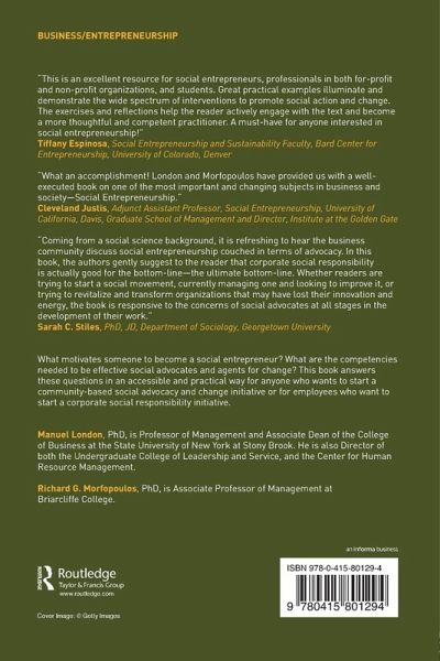 What motivates someone to become a social entrepreneur? What are the competencies needed to be effective social advocates and agents for change? This book answers these questions in an accessible and practical way, providing comprehensive guidelines, numerous examples, and sources of information and training for anyone who wants to start a community-based social advocacy and change initiative or for employees who want to start a corporate social responsibility initiative. Features include the following: examples of individuals and organizations who have learned from successes and failures in social entrepreneurship self-assessments to help readers evaluate their own talents and proclivity to be social entrepreneurs steps and strategies, competency-building activities, and assessments to evaluate and facilitate initiatives resources available from foundations, government agencies, and other sources for the budding social entrepreneur